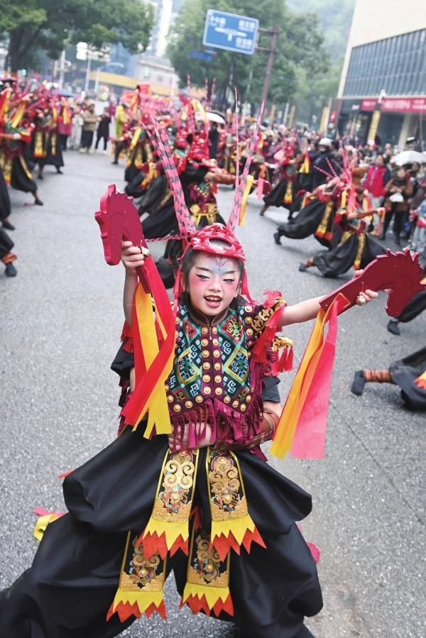 2月12日,2025年“仙境张家界 共享中国年”张家界元宵灯会上的民俗表演。辜鹏博 张明涛 摄