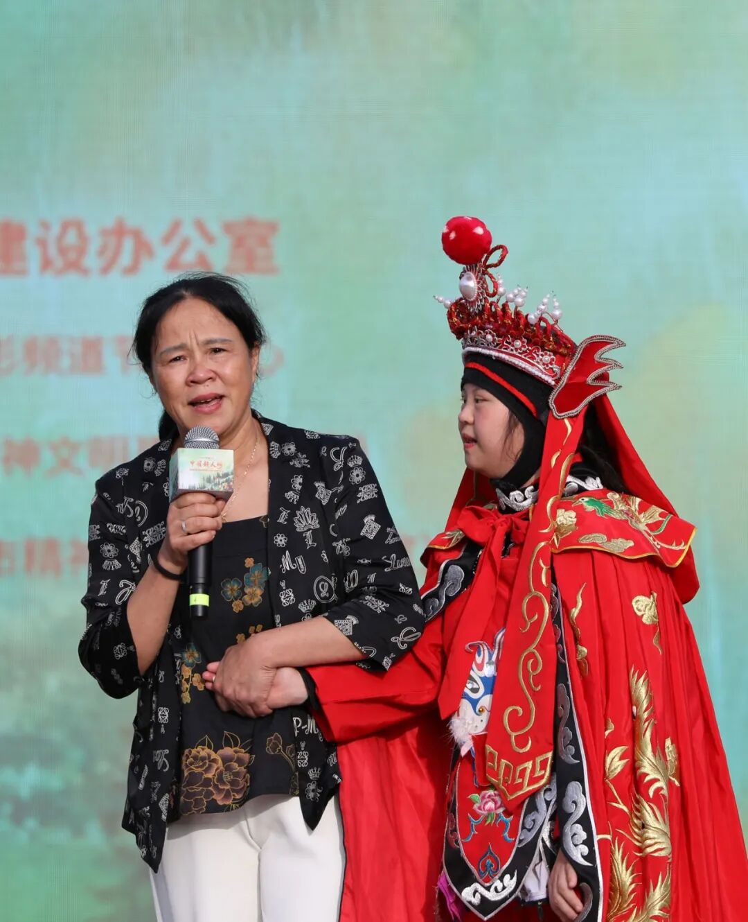 殷秋华(左)与男高音歌唱家陈小涛(右)一起表演歌曲《变脸》并与现场观众互动。王楠 摄