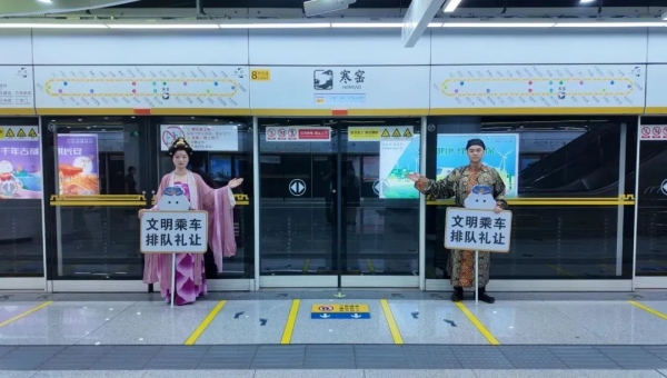“地铁排队日”活动自2012年首次开展,至今已是第13个年头,时值暑期,西安地铁结合出行人群特点,生动再现大家喜闻乐见的“寒窑传说”故事,开展了一场特别的文明出行倡议活动。