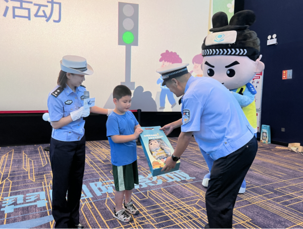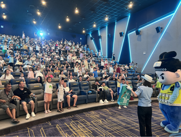 西安市公安局交通管理支队长安大队创新宣传载体,将交通安全课堂搬进影院,以“安全出行 快乐一夏”为主题开展沉浸式宣传活动。通过光影教育、趣味互动、卡通引导三维模式,为少年儿童送上生动的交通安全“暑期礼包”,让安全知识在轻松氛围中入脑入心。