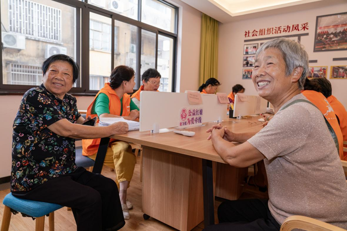 8月31日,浙江省台州市临海市鹿城社区的两位老人正报名加入公益红娘,利用闲暇时间为爱牵线。新华网 钟奕 摄