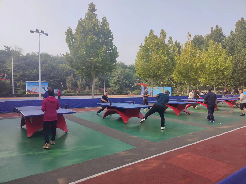 10月13日,在石家庄市正定县恒州南街“悦乐园”,居民正在进行户外运动。新华网 李然 摄