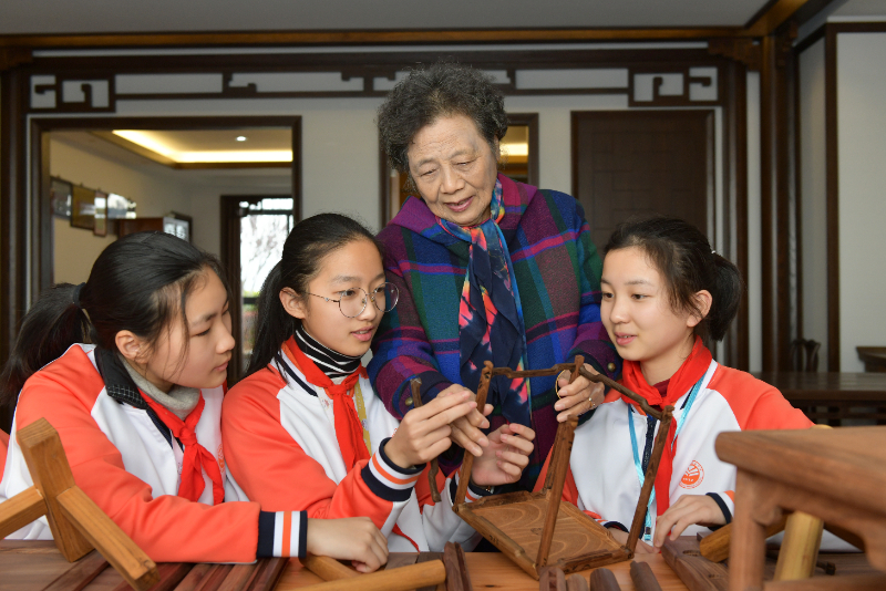 李庾南和学生一起制作模型。南通市文明办 供图