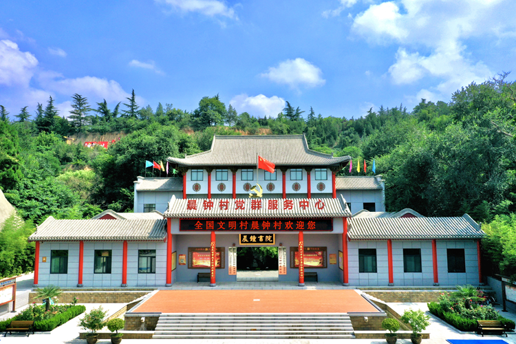 全国文明村韩城市金城街道晨钟村村委会广场全貌(2022年8月11日摄)。新华网发(王楠 摄)