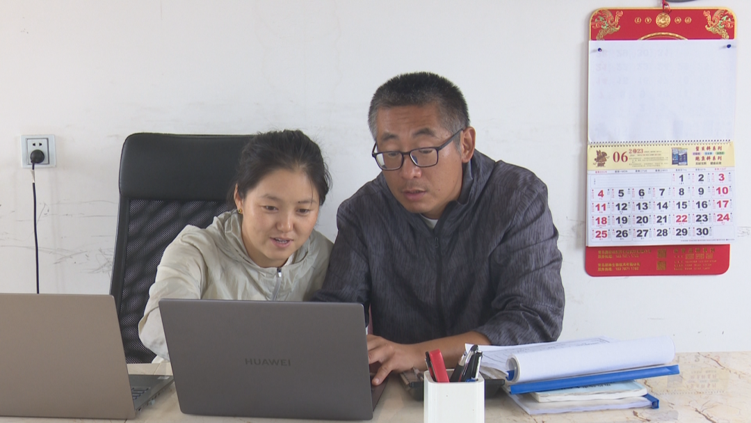 图为郭旗夫妇二人正在网上研究销路。图片来源:辽宁省营口市文明办