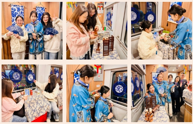 春运期间,昆明客运段高铁四队19组推出“青花”服务品牌餐吧,给旅客出行提供温暖的乘车体验。