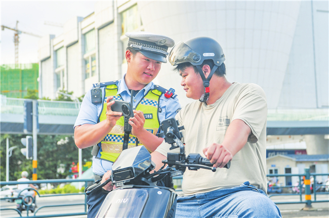 记者了解到,海口公安交警结合当前开展的摩托车、电动自行车专项整治行动,针对闯红灯、逆行、未佩戴安全头盔、无号牌上路等常见违法行为,在坚持严格执法的同时,积极推行“教育免罚”举措。违法当事人可自主选择观看警示教育视频、抄写交通法规或体验辅助执法等方式完成学习,签署文明骑行承诺书后即可免予处罚。