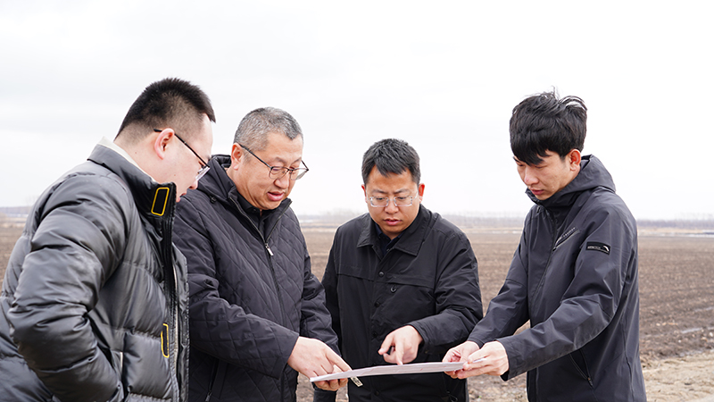 垦地双方开展“党建+社会化服务链”合作进行田间规划指导。庆丰农场供图