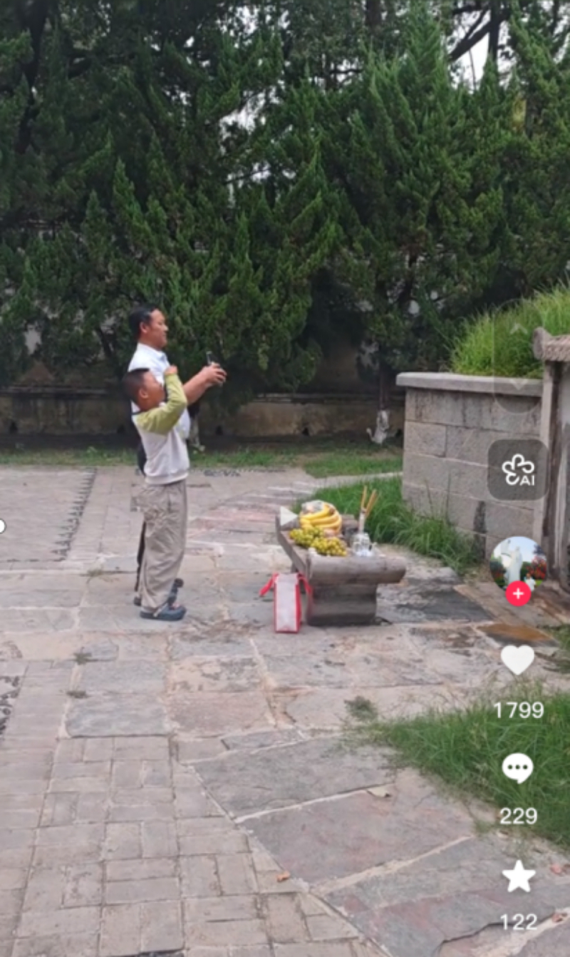 中秋节前,记者刷到谷常新的抖音号上新了。视频中,他带着小孙子在李白墓前祭拜诗仙,三鞠躬,敬美酒……爷孙俩的虔诚崇敬之情溢于言表。记者问他是否有意培养谷家第51代守墓人?他回答得很实诚:“我培养孙子从小就要了解李白学习李白,但是,他能不能来李白墓园接班,还要看机缘。”